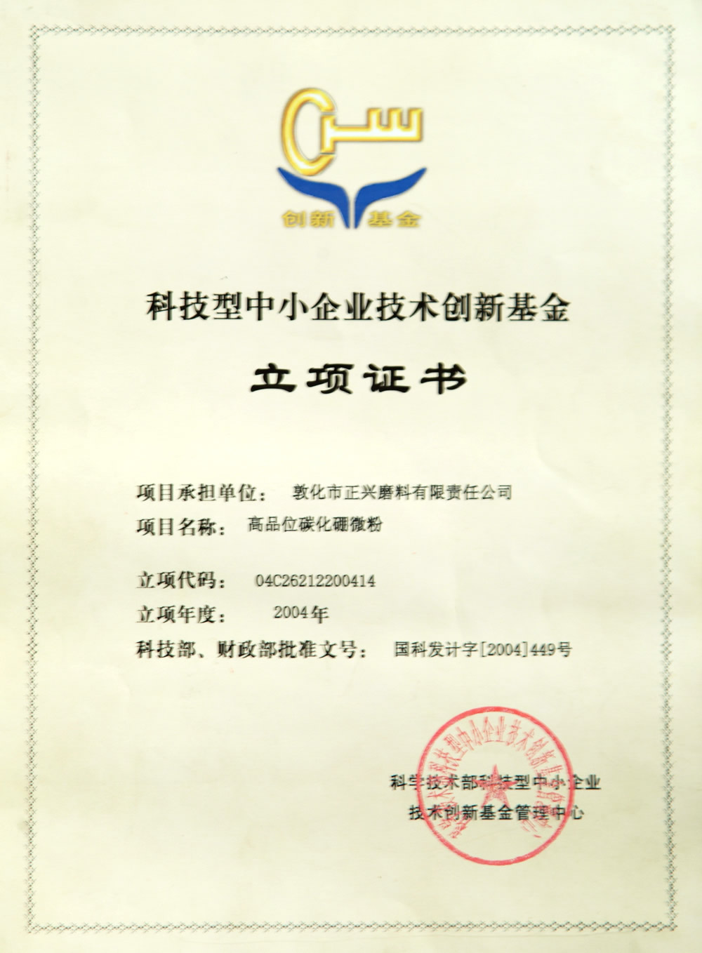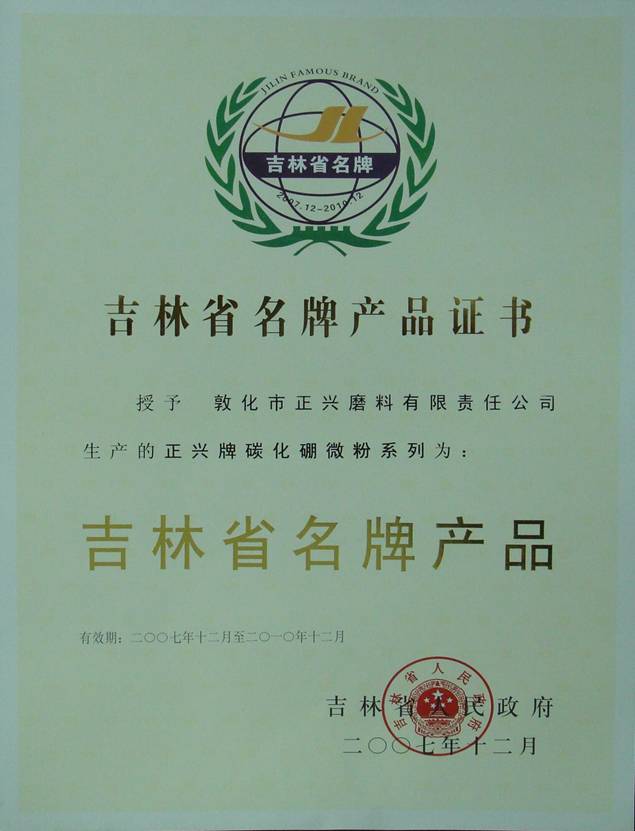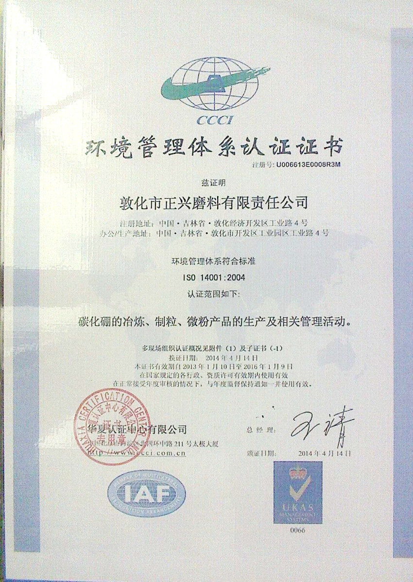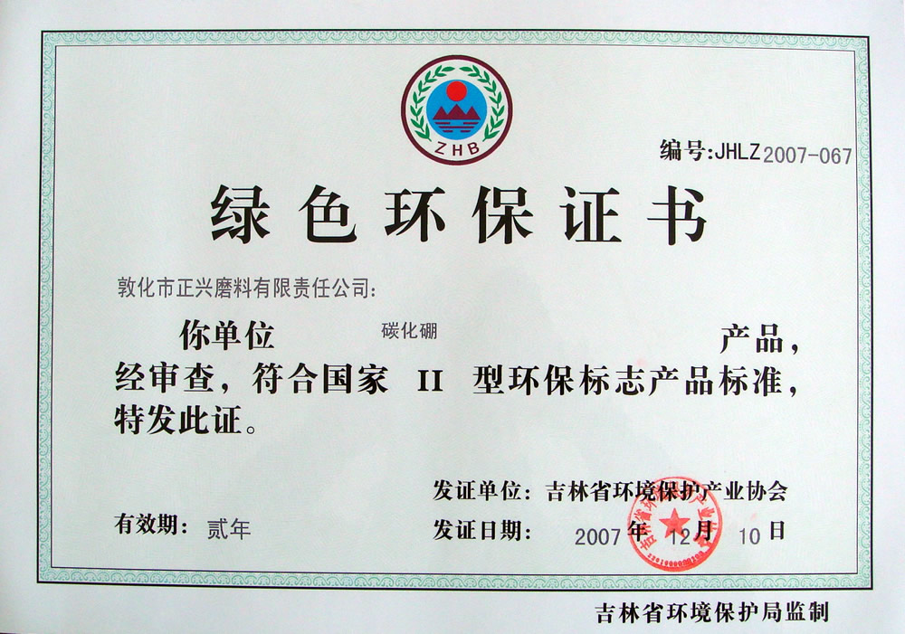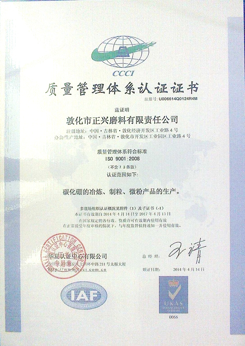 高品位碳化硼微分证书