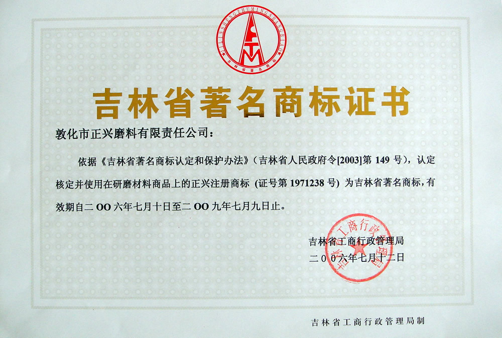 吉林省著名商标证书